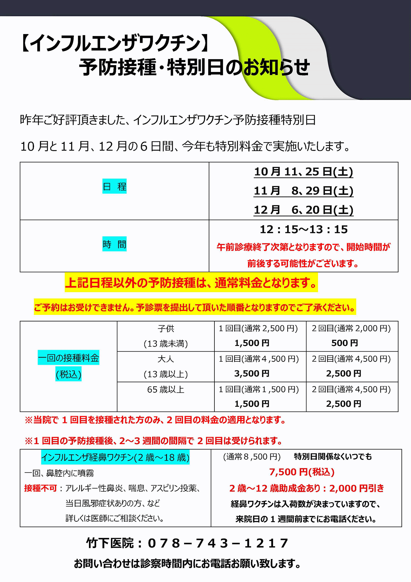 *診察終了時間30分前までには、ご来院お願い致します*
